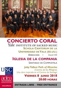 En este mes de junio, Yale Schola Cantorum, el coro de cámara de la universidad de Yale, EE.UU, está de gira por España, visitando las paradas principales del Camino de Santiago e interpretando la música de Joby Talbot, Path of Miracles (El Camino de los Milagros).