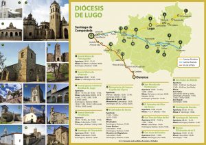 En el caso de la Diócesis de Lugo, abarca las iglesias de Santa María del Cebreiro, Santiago de Triacastela, el punto de información del Monasterio de Samos, O Salvador de Sarria, San Nicolás de Portomarín, O Salvador de Vilar de Doñas, San Tirso de Palas de Rei, San Xoán de Furelos, San Pedro de Melide, Santiago de Boente, Santa María de Fonsagrada, Santa María de Vilabade, la Catedral de Lugo, incluida en la declaración de Patrimonio Mundial de los Caminos del Norte, Santiago de Taboada, en Silleda, y Santa María de Dozón.