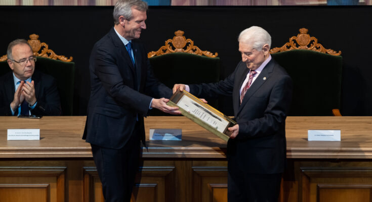 En el acto que tuvo lugar en el Salón Noble del Colegio de Fonseca, el titular del Gobierno gallego puso en valor las múltiples facetas de Portomoñe, desde su papel fundamental en los inicios del autogobierno gallego y en la redacción del Estatuto de Galicia hasta su servicio público como conselleiro de la Xunta, sin olvidar su profesión en el ámbito de la abogacía y su contribución a las letras como escritor.