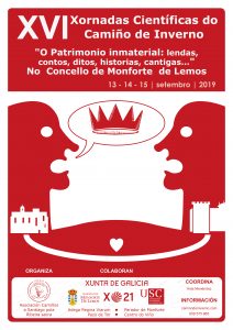 As XVI Xornadas Científicas do Camiño de Inverno que organiza a Asociación Camiños a Santiago pola Ribeira Sacra teñen por lema “O Patrimonio Inmaterial do Camiño de Inverno por Ribeira Sacra”, desenvolvéndose este ano no Concello de Monforte de Lemos, segundo a orde rotatorio de concellos destas terras ao que dedican as Xornadas cada ano a Asociación. Serán as lendas, cantigas, contos, historias, concertos con instrumentos tradicionais, como a zanfona ou o pito pastoril galego os temas que abordarán os relatores invitados, e mesmo, os propios participantes serán convidados a que acheguen os seus coñecementos sobre esta temática nunha das xornadas. Trátase de poñer en valor este rico Patrimonio oculto, moito del, a piques de desaparecer e que foi transmitido de forma oral xeración tras xeración.